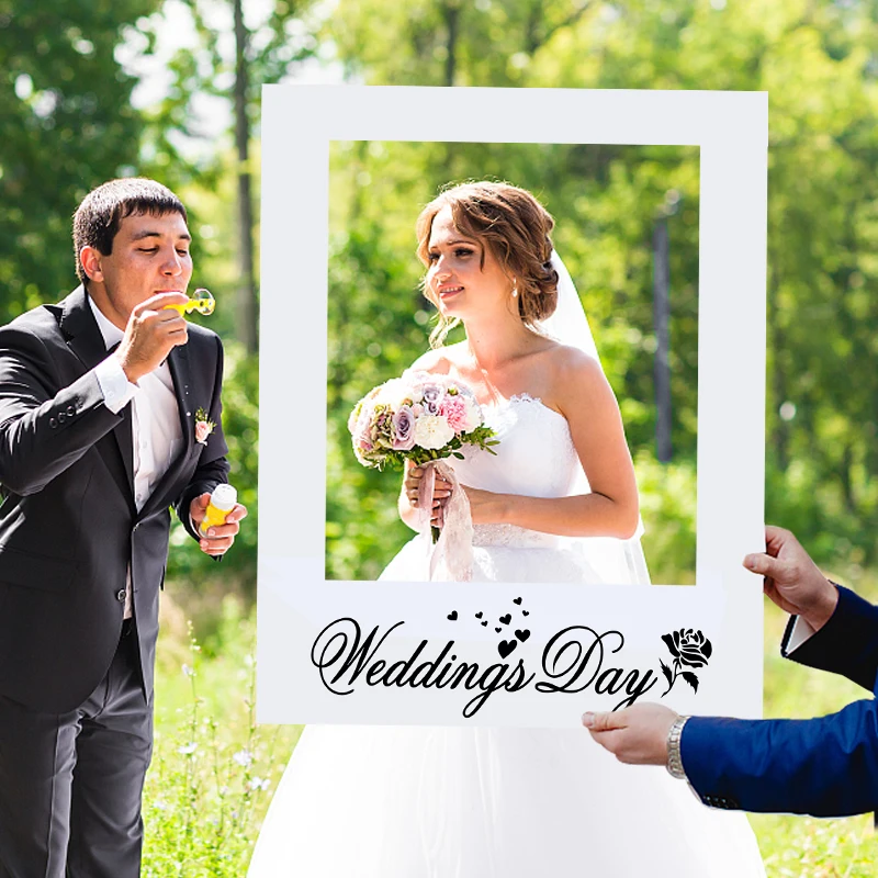 Quantity: 1 piece Size: as shown in the figure Color: white Material: paperboard Occasion: wedding party, bachelor party, hen party, wedding party Design: Wedding Day/Wedding Usage: paper photo frame props